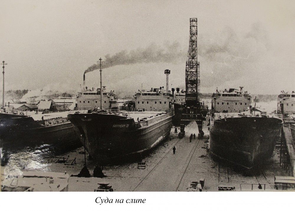 В 1959 г. началось строительство слипа для подъёма и ремонта подводной части судов. Сначала была построена наклонная часть слипа, а в 1961 г. построена горизонтальная часть слипа. Это дало возможность поднимать на зиму до 16 единиц самоходного и несамоходного флота. В 1964 г. началась реконструкция слипа для подъёма крупнотоннажных судов. Производится замена мягкого основания (песок, гравий) под рельсами на твёрдое щебёночное, поставлены дополнительно две лебёдки.