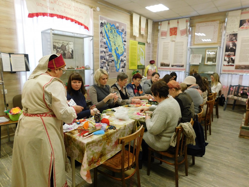 16 февраля в Медвежьегорском районном музее состоялось второе занятие в рамках культурно-образовательной программы «Календарь народной куклы». В ходе данного мероприятия участники знакомятся с народными куклами Карелии. В этот раз занятие было посвящено кукле "Масленица". Обычай праздновать Масленицу берёт своё начало с древнейших времён, этот праздник прежде всего был посвящён радостной встрече весны и проводам зимы. В народе Масленица всегда была весёлой порой. Отмечать Масленицу было принято играми, катанием на санках с ледяных гор. В Масленицу обязательно принято печь блины, ведь блин - символ солнца. В последний день масленичной недели происходило сожжение чучела зимы. "Домашняя Масленица" - семейная кукла, которую бережно хранили как символ достатка и здоровья.