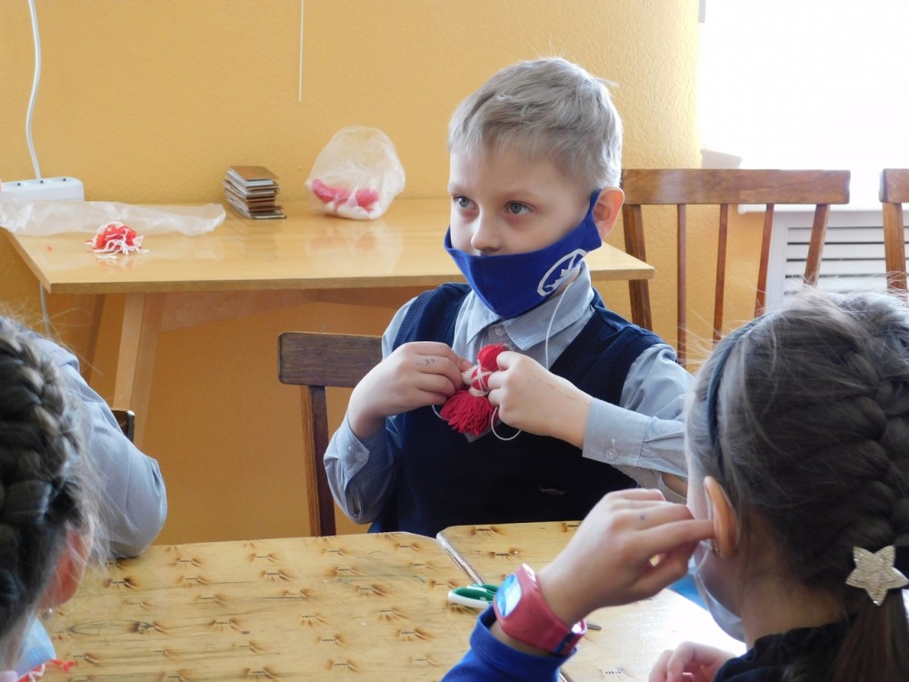 Ученики 1 класса МСОШ №3 на мастер-классе "Кукла Мартиничка".
