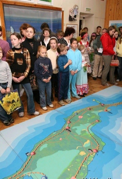 В октябре в музее работала интерактивная выставка «Кижи» – мастерская детства», на которой было представлено 230 детских работ, 50 из них выполнены детьми и педагогами нашего района. Экспонаты выставки можно было трогать, брать в руки. Все желающие могли поиграть в игру домино, сделанную руками детей в мастерских острова, и совершить путешествие по карте о. Кижи. Выставка стала результатом сотрудничества федерального и муниципального музеев в рамках долгосрочного договора о социальном партнёрстве музея «Кижи» и администрации района.