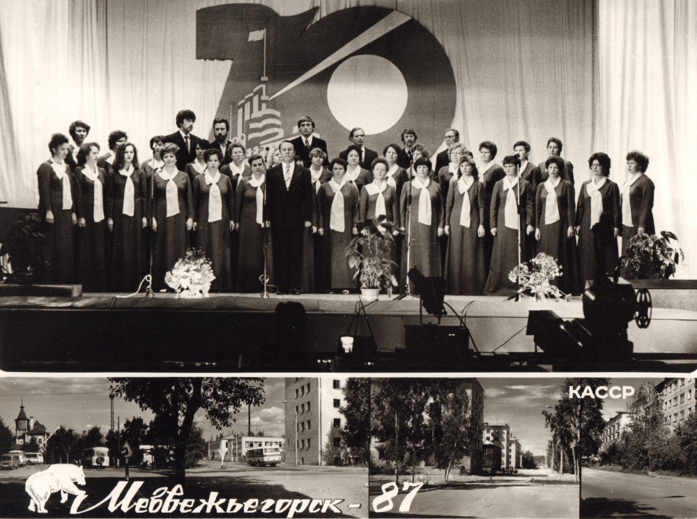 В 1969 году А.А. Антышев приехал в Медвежьегорск, а в 1975 году - создал хор. Вначале коллектив был женским (Варвара Малинина, Ирина Готчиева, Галина Канинг и другие). Затем хор расширился, пришли мужчины. Коллектив стали называть академическим. Солистами были – М. Тумаш, Т. Пашиева, С. Чинченко, А. Карху, В. Шикерин, М. Галемский, А. Мишина, Л. Монахова, В.Серко, А. Маркелов и др. Основой репертуара стала русская и зарубежная классика, хоры из опер, оперетт, кинофильмов. Исполнялись романсы и прочие камерные формы.