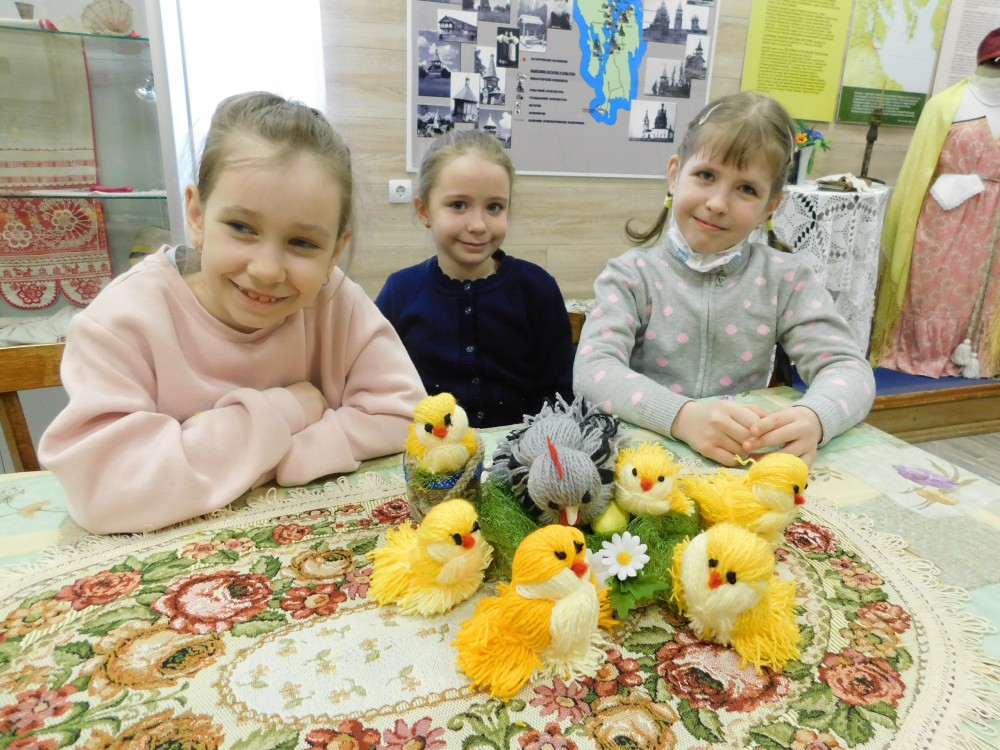 Накануне праздника Светлой Пасхи в Медвежьегорском музее состоялся мастер-класс для детей по изготовлению пасхального цыплёнка. Провела его Ирина Сергеевна Пшенова - волонтёр культуры и большой друг музея. На мастер-классе юные рукодельницы не только смастерили цыплят, но и узнали о пасхальных традициях и их истории: о том, как связаны яйцо, цыплёнок и воскресение Христа; чем отличаются крашенки от писанок; какие угощения хозяйки готовят на Пасху.