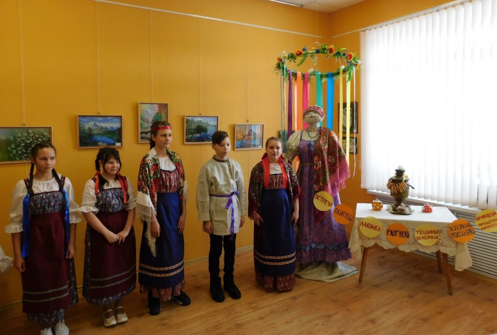 Стихами о любимом народном празднике, символизирующем наступление весны, в этот солнечный день гостей музея приветствовали учащиеся 5 класса Медвежьегорской СОШ им. А. Фанягина.