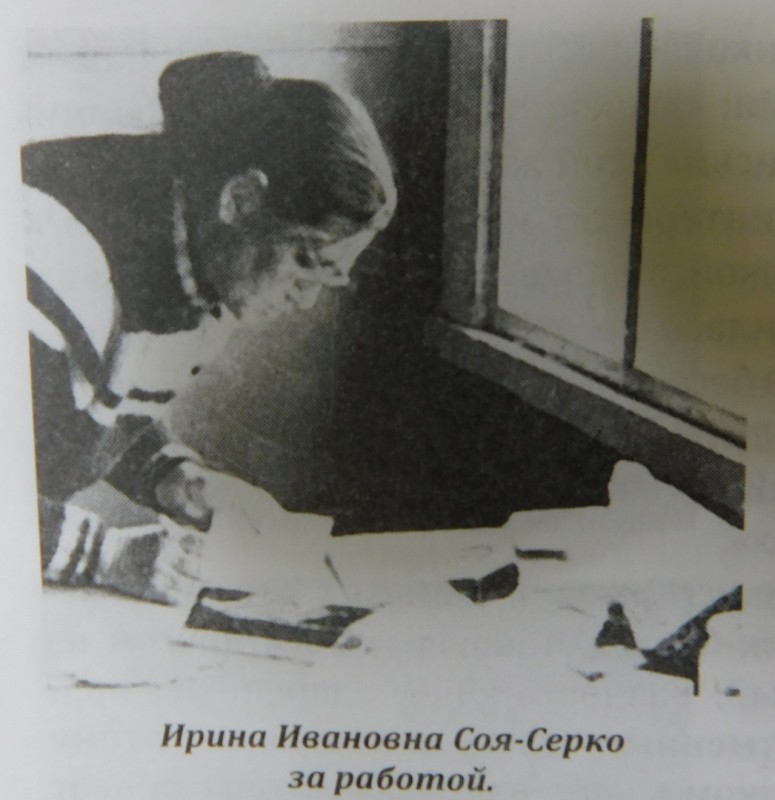 И.И. Соя-Серко была знакома со многими поэтами серебряного века: встречалась с Александром Блоком, работала с Владимиром Маяковским. Она оформляла «Окна РОСТа», павильоны Всесоюзной сельскохозяйственной выставки. Прочитав в журнале «Наука и жизнь» очерк В.В. Шевелёва о нашем музее, она приехала в незнакомый ей Медвежьегорск и в течение двух месяцев абсолютно бескорыстно оформляла экспозиции отдела природы. Так завязалась дружба Ирины Ивановны и Медвежьегорского музея в лице его основателя В.П. Ершова, которая крепла в совместных походах по Карелии.