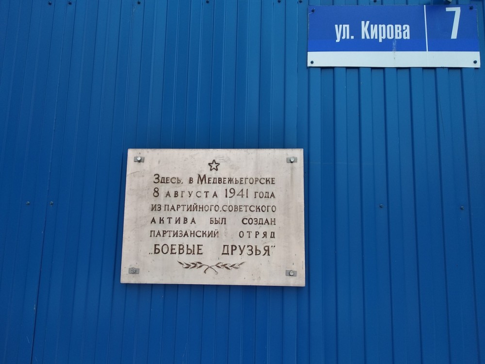 В память о героях-партизанах отряда "Боевые друзья" в Медвежьегорске на стене здания администрации района установлена мемориальная доска.