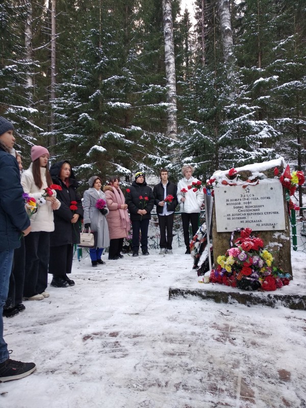 16 ноября в рамках патриотического проекта "Память жива" состоялся митинг на месте гибели поэта Бориса Смоленского, павшего в бою за Медвежьегорск в этот день 1941 года.