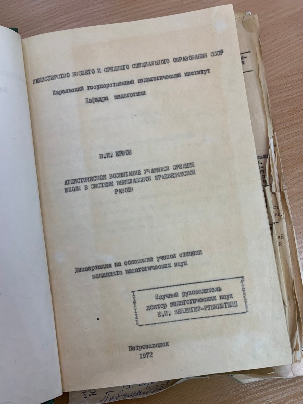 В 1972 году Виктор Петрович защитил кандидатскую диссертацию по педагогике, а в 1974 году переехал в Петрозаводск и стал преподавателем кафедры педагогики Петрозаводского государственного университета и некоторое время был заведующим этой кафедрой. В это время выходят книги, в которых он обобщил свой педагогический и музейный опыт «По тропам родного края» и «Родники познания».
