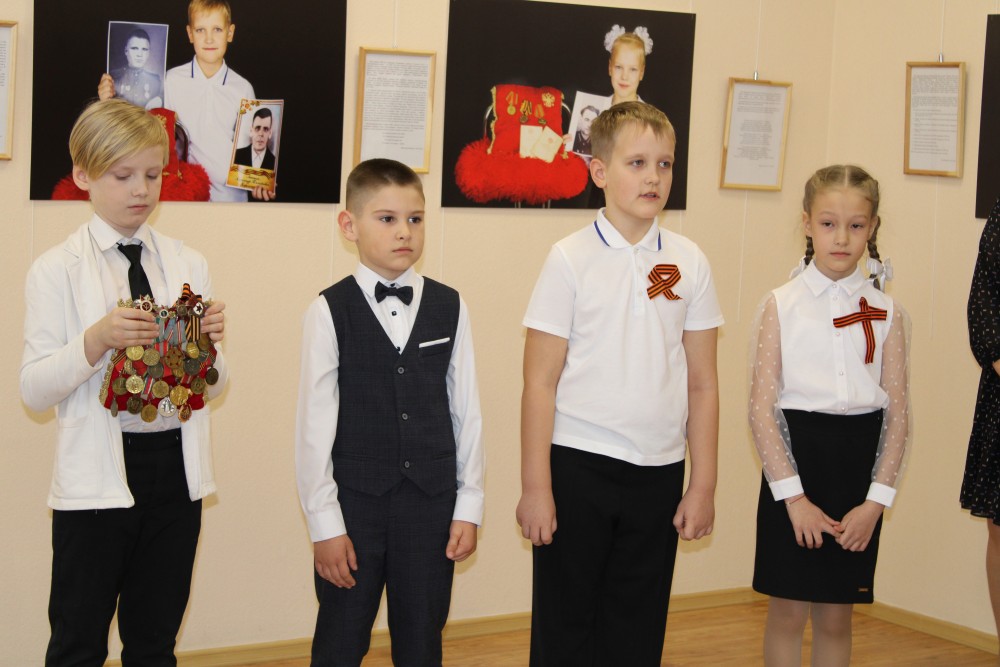 25 апреля в Медвежьегорском районном музее открылась выставка «Правнуки Героев». На выставке представлены фотографии учеников начальной школы имени А. Фанягина с памятными вещами их прадедов – наградами, медалями, документами, а также предметы из фондов музея. В ходе исследовательской работы ребята вместе с родителями собирали сведения о своих родственниках, воевавших в годы Великой Отечественной войны.