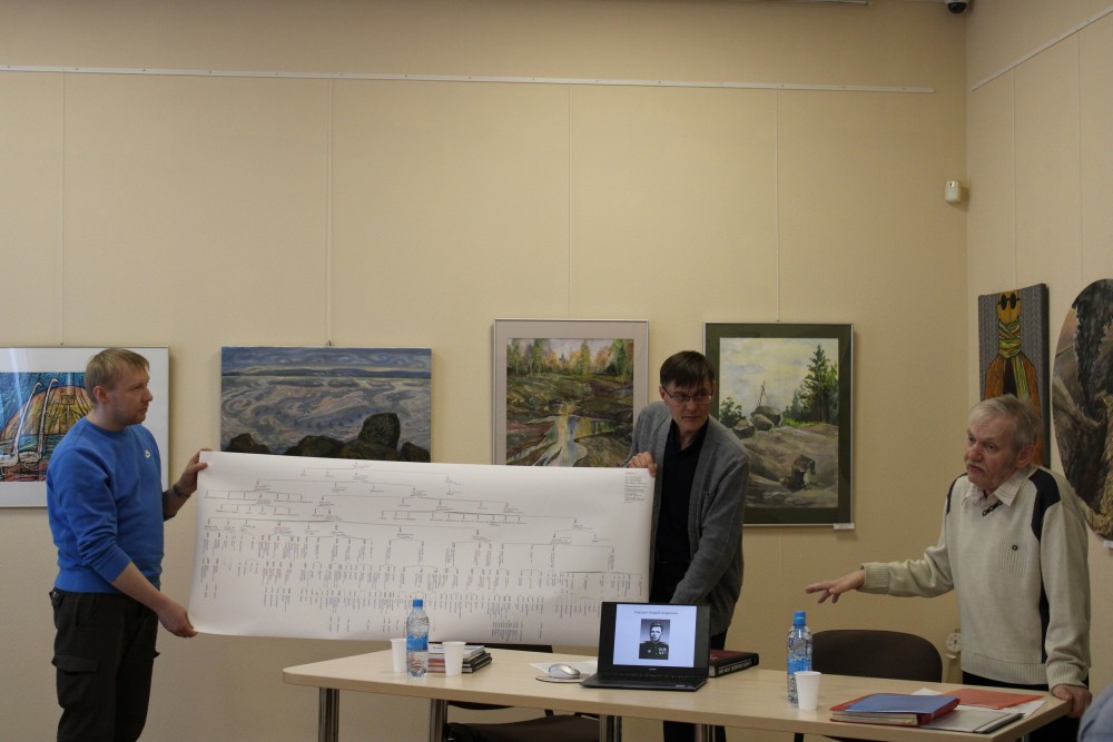 П. И. Шаранов подробно рассказал гостям встречи об этапах работы над книгой, о используемой им методике составления родословной, о сложностях, с которыми приходилось сталкиваться в процессе поиска и изучения сведений о земляках-фронтовиках.