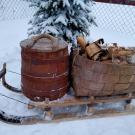 На сани ставили деревянные бочки с крышками или кадушки для подвоза воды от колодца или с озера до дома. Размещали две бочки небольших размеров или одну широкую побольше. Так как крышки в бочках были не совсем уж притёртыми к основанию, чтобы вода сильно не плескалась при перевозке, прямо поверх воды в бочку насыпался слой чистого снега, затем размещалась крышка.