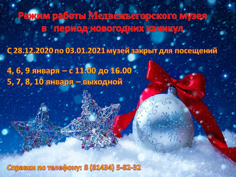 С 28.12.2020 по 03.01.2021 г. Медвежьегорский районный музей закрыт для посещений.