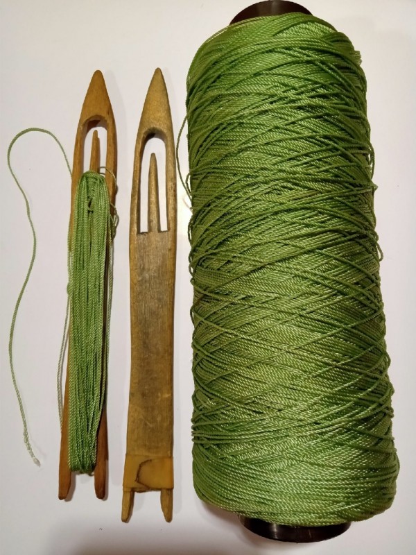 Для вязания сетей отец изготовил своими руками специальный станок. На станке на гвоздях крепилась прямая толстая проволока, на которую нанизывалась толстая шёлковая веревка, на неё набиралось полотно. При помощи тоненькой дощечки (или струганой лучины) определенной высоты (смотря для какой рыбы) и иглы-челнока набирались ячейки из шёлковой нити. Основа узелковой сети - полотнище вытянутой прямоугольной формы длиной от 20 до 80 метров, а высотой от 1 до 2 метров. К верхней верёвке отец крепил поплавки, так называемые «кябрюшки», к нижней – грузы-кольца из толстой проволоки. Поплавки делались из полосок бересты в виде закрученных трубочек. Бересту для этого отец резал на длинные полосы и опускал в кипящую воду, от соприкосновения с горячей водой береста скручивалась в трубочки. «Кябрюшки» поддерживали сеть на воде, и по ним можно было сразу определить место, где опущена сеть. А если поплавки дрожали на воде или опускались ниже уровня воды, то можно было с уверенностью думать о наличии рыбы в сети. Отец опускал в воду одну сеть, а если позволял водоем (достаточной была глубина, не было коряг), то сети связывались в сетные ряды, до двух-трёх и более штук. Готовые сети отец окрашивал различными цветными красителями: чёрными, синими, зелёными, бордовыми. После частой ловли сетями в них могли образовываться дыры. Такая сеть вновь подвешивалась на станок и ремонтировалась.