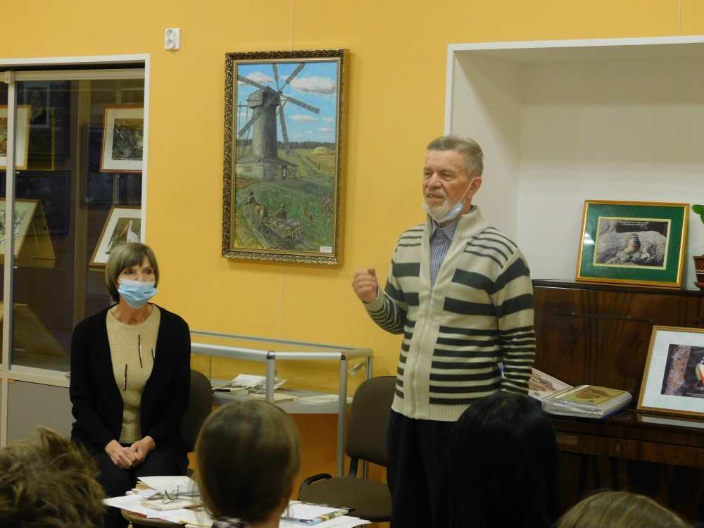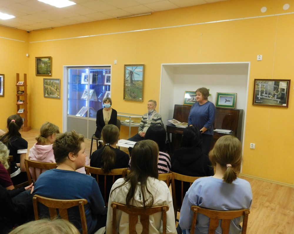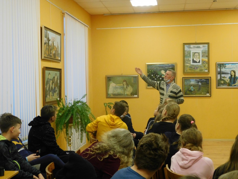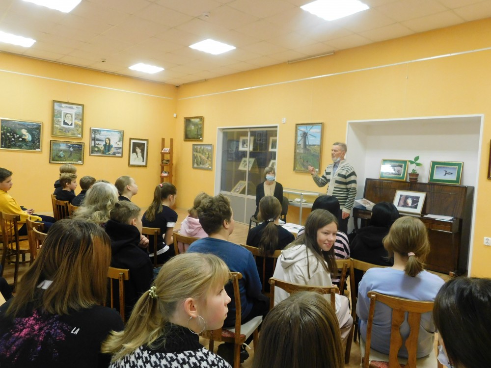 30 ноября в Медвежьегорском районном музее состоялась творческая встреча с Борисом Прохоровым. В данный момент в стенах музея экспонируется персональная выставка Б.А. Прохорова, на которой вместе с картинами, фотографиями представлены и его книги. В ходе встречи Борис Андреевич познакомил учащихся 6 класса МСОШ имени А. Фанягина со своей биографией, творчеством, увлечениями. Каждый присутствующий мог пообщаться с автором, задать интересующие вопросы.
