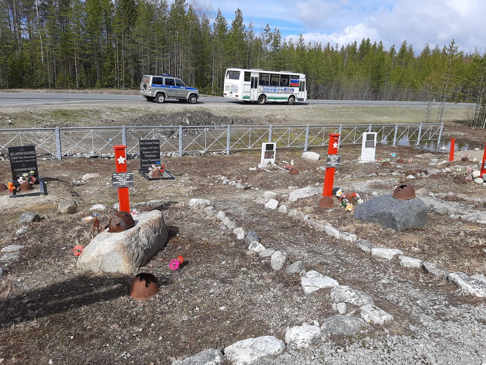 Участники мероприятия посетили воинские захоронения, находящиеся на 9 км шоссе Повенец-Пудож, в п. Пиндуши и на 646 км шоссе Санкт-Петербург–Мурманск. Представители автопробега возложили венки и цветы к братским могилам советских воинов.