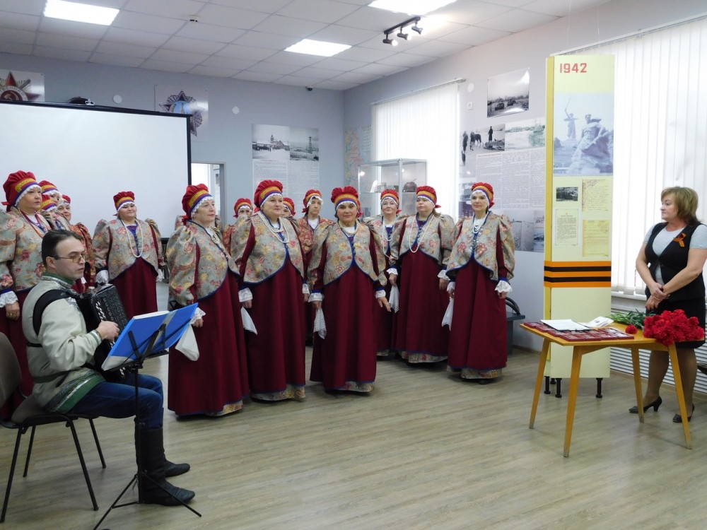 Концертную программу для участниц и гостей мероприятия представил хор "Русская песня". Далее был продемонстрирован фильм "Прорыв Медвежьегорского узла обороны", снятый в августе 2019 года.