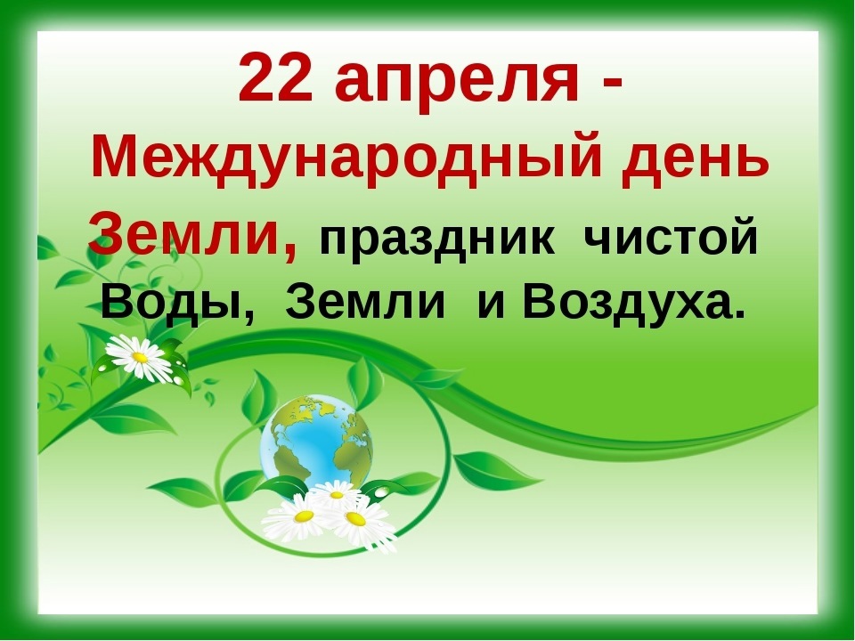 Всемирный день Земли отмечается с 1990 года по решению ЮНЕСКО с целью объединения людей в деле защиты окружающей среды. В этот день со своими обращениями к публике обращаются миротворцы, проводятся различные экологические конференции.