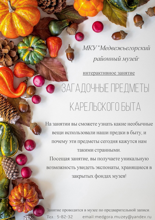 На занятии вы сможете узнать какие вещи использовали наши предки, и почему эти предметы сегодня кажутся нам такими странными. Занятие включает в себя осмотр и обсуждение бытовой культуры карел. На занятии будут продемонстрированы предметы из различных коллекций музея: дерево, керамика, береста и железо. Посещая занятие, вы получаете уникальную возможность увидеть экспонаты из закрытых фондов Медвежьегорского районного музея. На нашем интерактивном занятии вы можете услышать увлекательнейший рассказ о бытовых предметах, увидеть их собственными глазами, а некоторые из них даже попробовать в действии. Но перед этим попытайтесь догадаться, как и для чего наши предки могли использовать его! Данное занятие будет интересно детям младшего и среднего школьного возраста. По QR-коду вы сможете пройти по ссылке и купить билет для посещения данного занятия по Пушкинской карте.