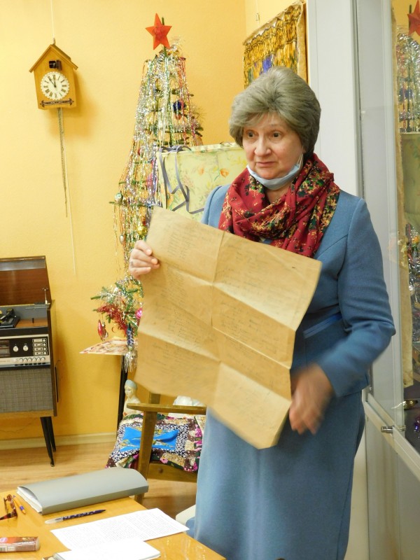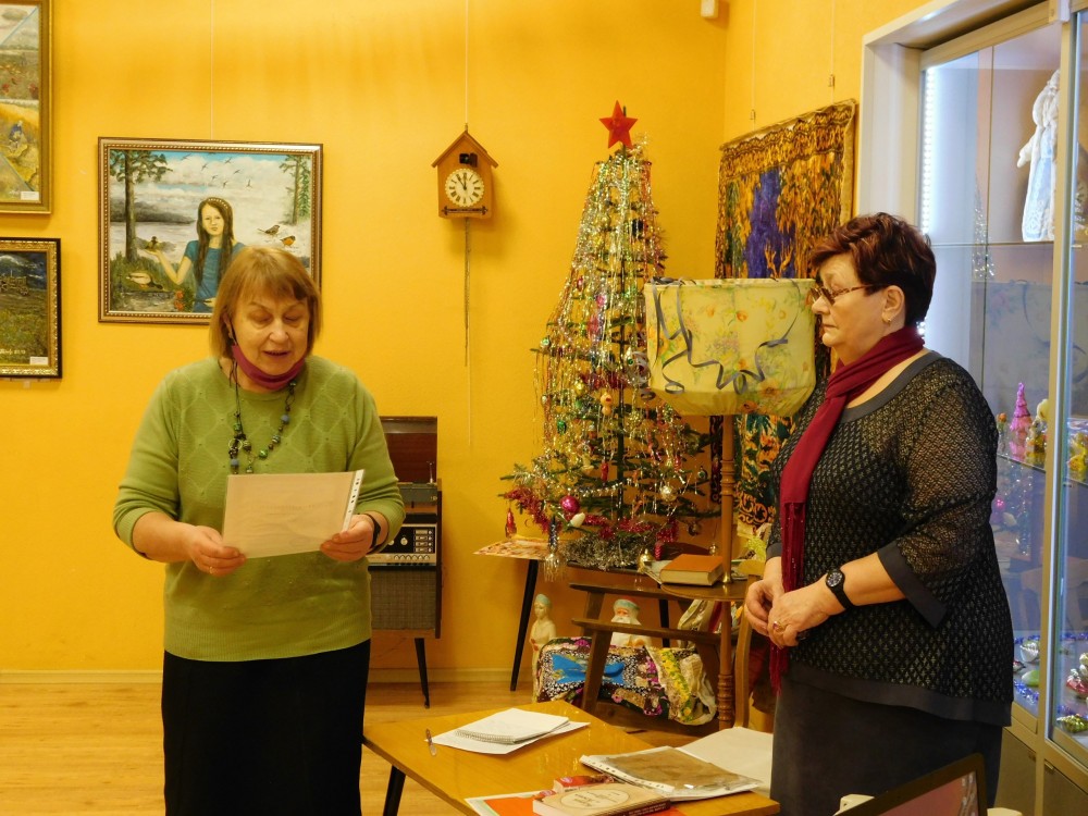 В завершение встречи перед гостями выступил Б.А. Прохоров, который рассказал о своих книгах и персональной выставке, а председатель Медвежьегорского филиала ГОК Е.П. Романова передала в музей первый выпуск вестника Генеалогического общества Карелии "Корни и Крона". музее состоялось заседание членов Медвежьегорского филиала Генеалогического общества Карелии, на котором были подведены итоги уходящего года.