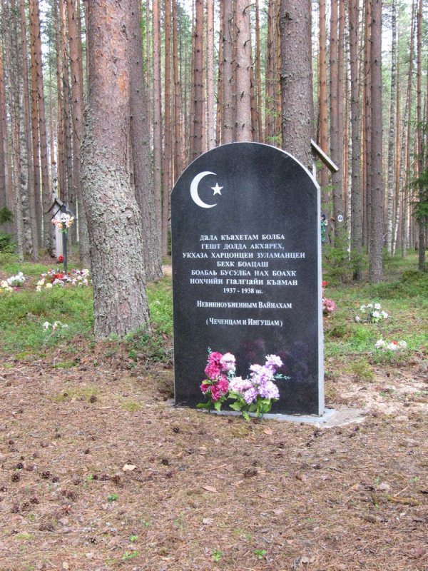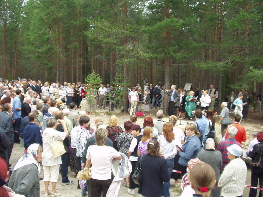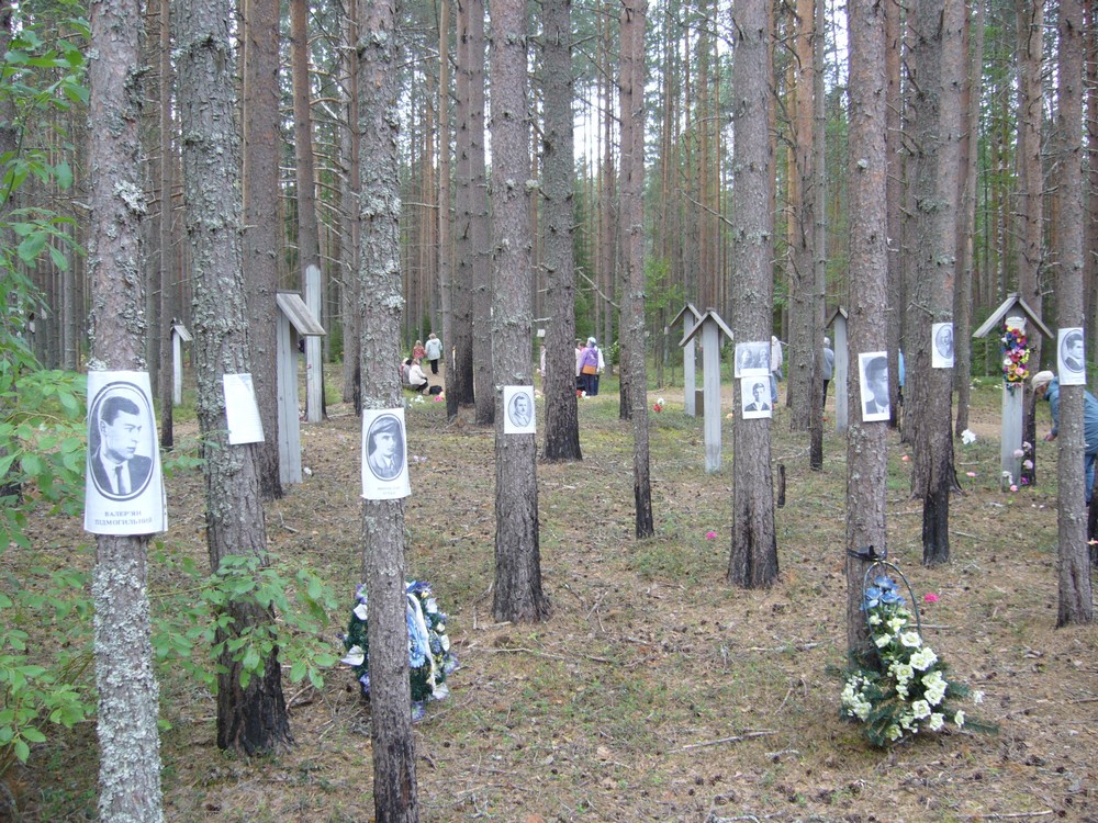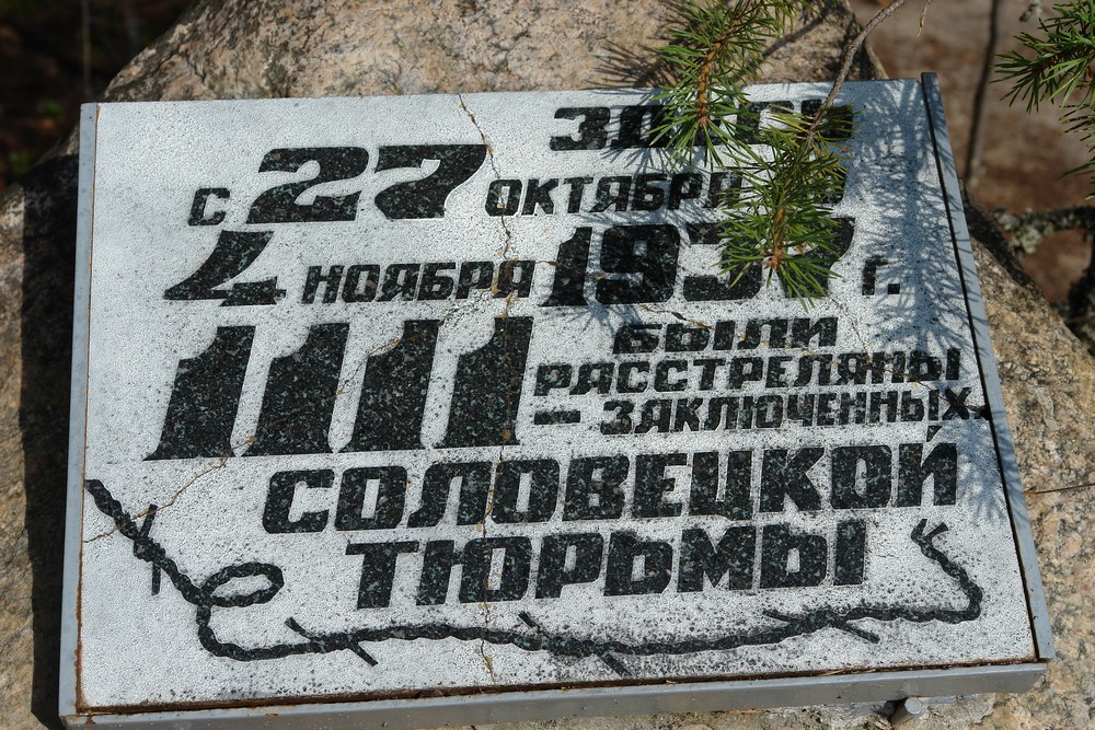 Одно из них – «Сандармох» - расположенный в 19 км от города Медвежьегорск (посёлок и станция Медвежья Гора, Медгора), который был в 1931–1941 гг. одним из центров ГУЛАГа – столицей БелБалтлага, Беломорско-Балтийского канала и БелБалткомбината (ББК). Название месту расстрелов дали по ближайшему нежилому урочищу.Место массовых захоронений было обнаружено в 1997 году. Тогда же было проведено благоустройство мемориального кладбища. В 1998 году возведена православная часовня, установлен монумент с барельефом «Расстрел с ангелом» (автор – Григорий Салтуп).